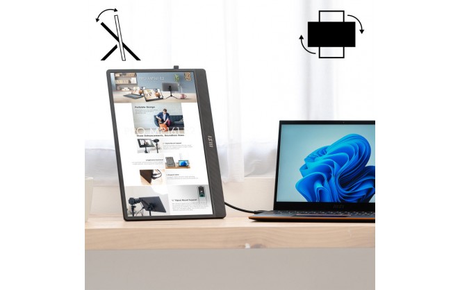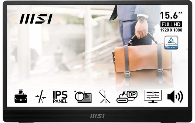 The MSI PRO MP161 E2 portable monitor is a highly versatile auxiliary display that's ideal for business travel. A sharp 15.6" Full HD (1920x1080) IPS panel features eye-friendly technology & versatile connectivity to PC, laptop, or mobile device through HDMI & USB Type-C (DP 1.2a Alt mode) ports. An incredibly lightweight & slender design makes packing easy, a smart kickstand supports multiple angles for portrait or landscape display, and a rear 1/4" mounting socket fits standard tripods.