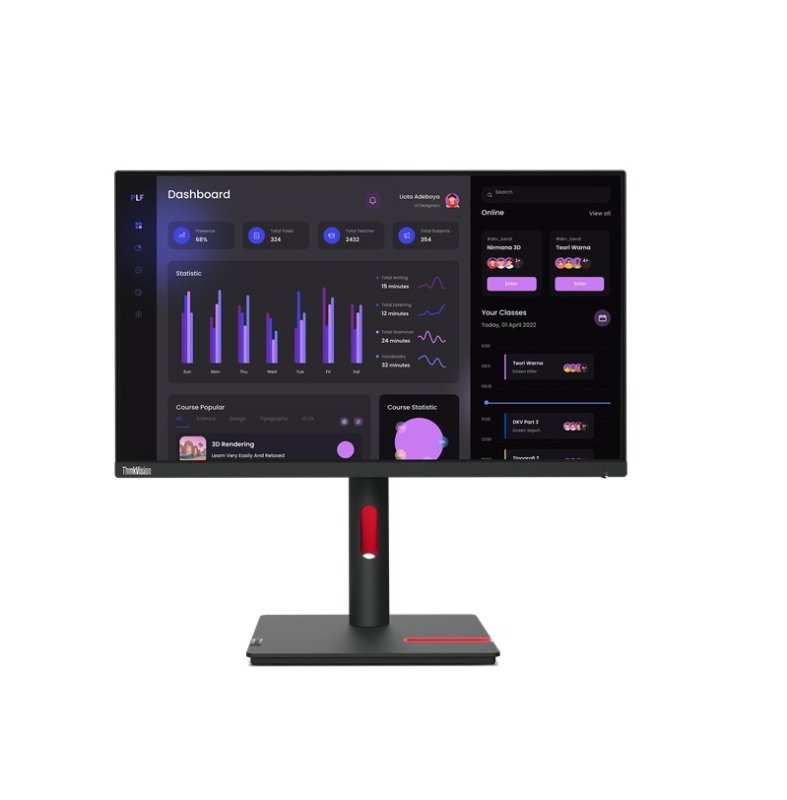 Navigate and customize the ThinkVision T24i-30 Monitor's settings to your preferred settings with the easy-to-use joystick placed behind the screen. The monitor features Natural Low Blue Light technology reducing harmful blue light without compromising high color fidelity. TÜV Rheinland Eye Comfort certification keeps your vision refreshed and fatigue-free even after hours of work. This monitor brings you the best features with minimal impact on the environment throughout its lifecycle. It's made in compliance with the latest TCO 9.0 regulations and made with 90% recyclable materials and is fully packaged using paper pulp, to protect the planet.