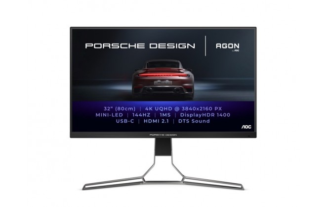 Inspired by the automotive world, the Porsche Design AOC AGON PRO PD32M features a premium design from Porsche Design. The lightweight frame is heavily inspired by Porsche wheel rims and their steering wheels, immediately bringing a Porsche car to mind. The housing follows the functional layout of the internal components and is tapered at the sides, adding to the dynamism of the overall design.
