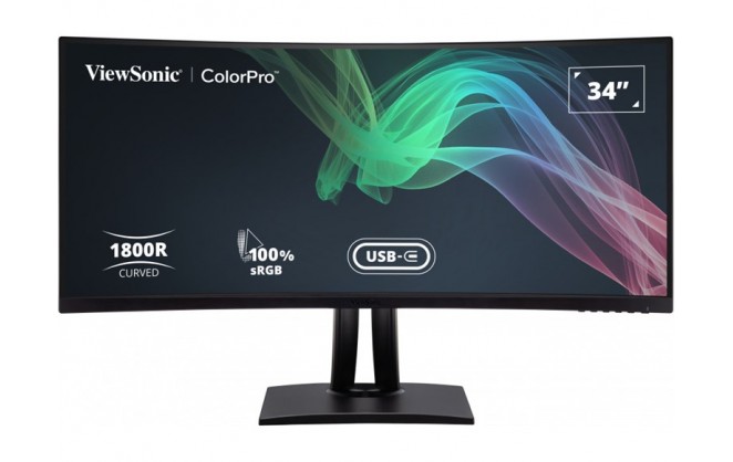 With an immersive curved screen and stunning WQHD+ 3440 x 1440 resolution, the ViewSonic VP3481a monitor elevates your viewing experience from flat to panoramic. With Pantone validated 100% sRGB color coverage, and an amazing Delta E<2 value, this 4K monitor provides industry standard color accuracy to ensure superior results, while HDR10 compatibility delivers a wider dynamic range of vivid colors and richer contrast. Thanks to an expansive 34” frameless screen, ultra-wide 21:9 aspect ratio, and integrated speakers, this monitor is ideal for video editing, content development, and other color-critical applications. Featuring an incredible 100Hz refresh rate and AMD FreeSync™ technology, this monitor delivers smooth, tear-free playback ideal for video editors and game developers. With a sleek and modern design, the VP3481a features a future-proof USB-C port as well as DisplayPort technology, and HDMI. What’s more, HDCP 2.2 content protection is standard across all ports to provide secure 4K content playback, streaming and gaming. An integrated color uniformity function ensures consistent chromaticity across the screen, while a 14-bit 3D look-up table generates a stunningly smooth palette of 4.39 trillion colors. Hardware calibration is also available with the optional ViewSonic Colorbration Kit, which allows you to quickly and easily calibrate the monitor for photography, graphic design, and other professional applications.