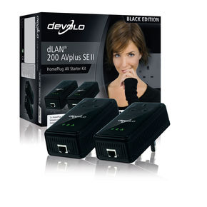 Devolo dLAN 200 AV plus Se II Black Edition Powerline Homeplug Passthrough Filter Kit (2x 1 Ethernet) Retail