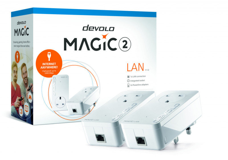 Fabulously fast and fabulously flexible - devolo Magic 2 LAN means that the future belongs to multi-media. The revolutionary Powerline adapter brings the internet right to your home at ultra-high speed, from the basement to the attic, with amazing ease from the power socket: Just plug in the devolo Magic adapters and connect them. Intelligent Plug & Play ensures that the magical internet from the power socket will start flowing wherever you want it without complicated configuration.