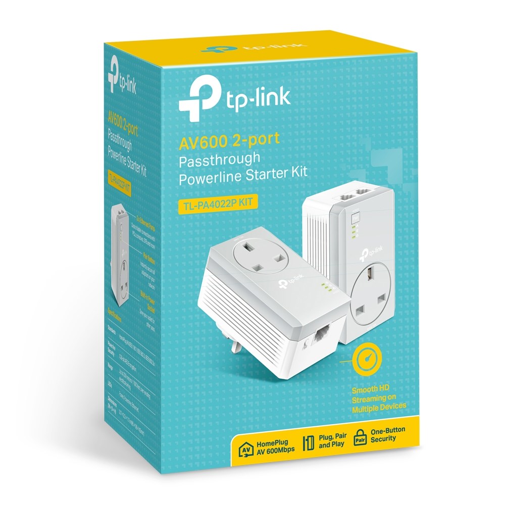 Using advanced Home Plug AV technology, TL-PA4022P KIT provides stable, ultra-high-speed data transfer rates over a household electric circuit for up to 300 meters. TL-PA4022P KIT easily handles bandwidth intensive applications. Stream in HD, game online and download large files without interruption thanks to reliable powerline links.