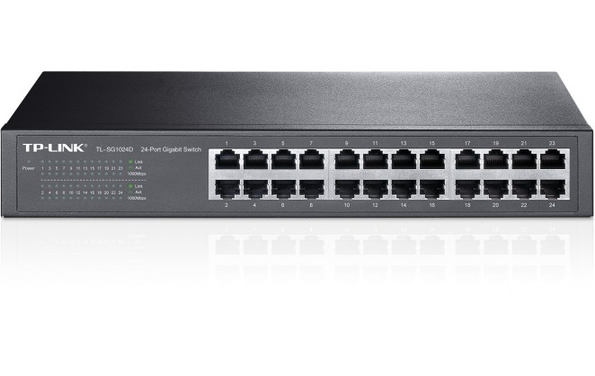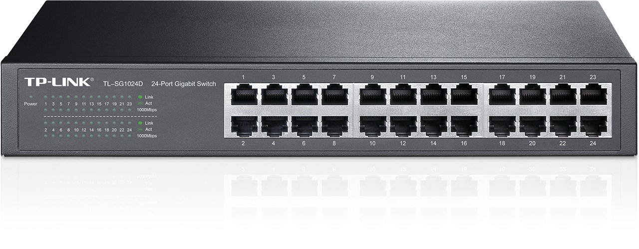 The TL-SG1024D 24-Port Gigabit desktop/rack-mount switch provides an easy way to make the transition to Gigabit Ethernet. All 24 ports support auto MDI/MDIX, no need to worry about the cable type, simply plug and play. Moreover, with the innovative energy-efficient technology, the TL-SG1024D can save up to 20%* of the power consumption, making it an eco-friendly solution for your business network. Featured with 24 10/100/1000Mbps ports, TL-SG1024D greatly expands your network capacity, enabling instant large files transferring. So,power users in the home, office, workgroup, or creative production environment can now move large, bandwidth-intensive files faster. Transfer graphics, CGI, CAD, or multimedia files across the network instantly. You now have the choice to go green when upgrading to a gigabit network! This new generation TL-SG1024D 24-Port Gigabit desktop/rack-mount Switch features the latest innovative energy-efficient technologies that can greatly expand your network capacity with much less power. It automatically adjusts power consumption according to the link status and cable length to limit the carbon footprint of your network. When a computer or network equipment is off, the corresponding port of a traditional switch will continue to consume considerable amounts of power.