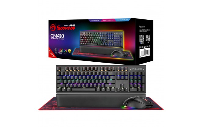 Marvo Scorpion CM420-UK Mechanical Keyboard Mouse and Gaming Surface 3-in-1 RGB Gaming Kit