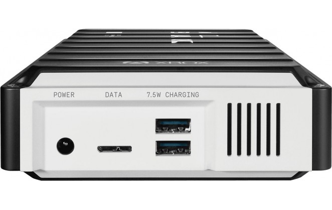The WD_BLACK™ D10 Game Drive for Xbox comes equipped with two 7.5W USB Type-A charging ports to make charging your gaming gear or accessories even easier. Carefully crafted to stand either vertically or sit horizontally, your gaming set up will keep your devices charged and prepared for battle at a moment's notice.